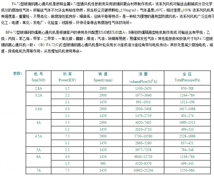 F4-72型A玻璃鋼離心通風(fēng)機(jī)