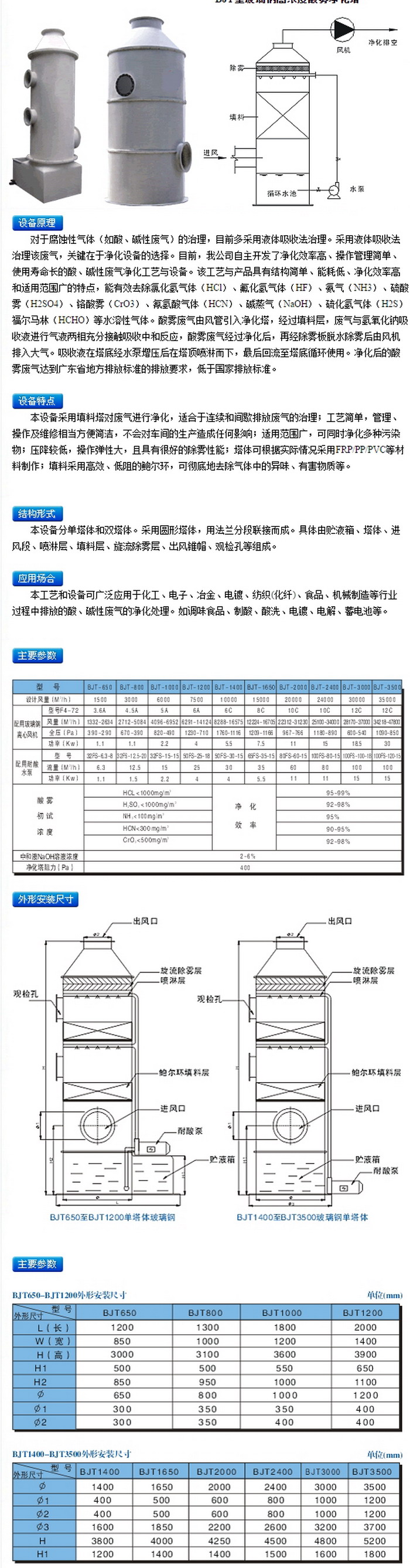 BJT型玻璃鋼高濃度酸霧凈化塔