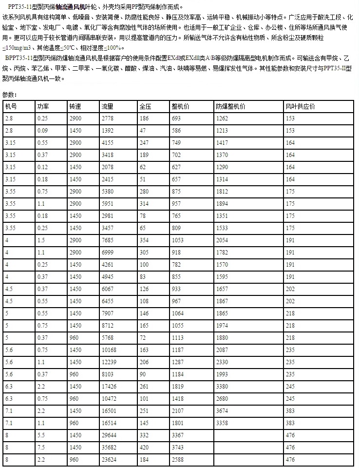 聚丙烯軸流通風機PPT35-11型