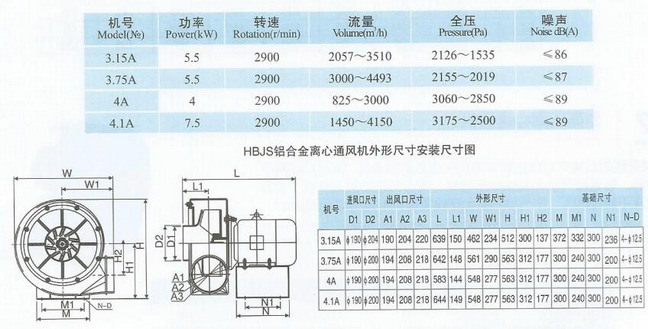 HBJS型鋁合金離心通風機